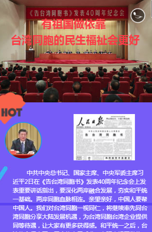 點(diǎn)擊上圖,了解《有祖國(guó)做依靠 臺(tái)灣同胞的民生福祉會(huì)更好》。