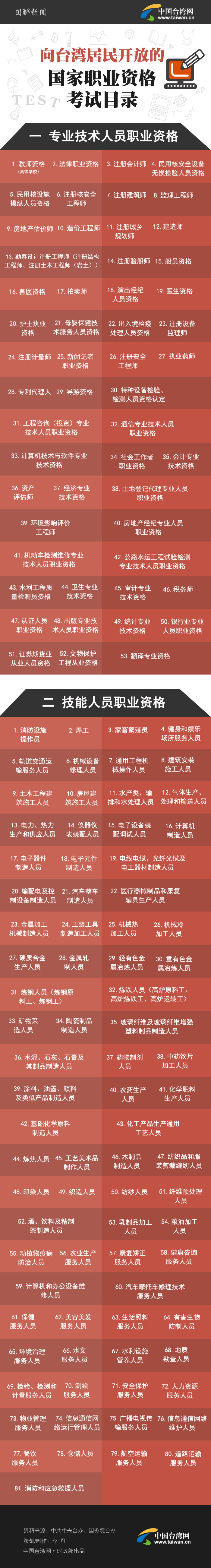 【圖解新聞】向臺灣居民開放的國家職業資格考試目錄