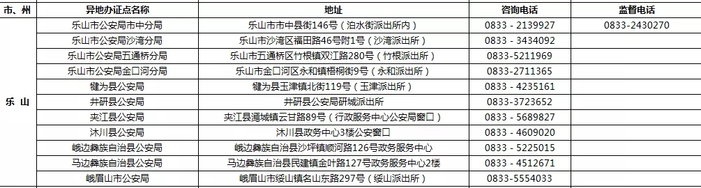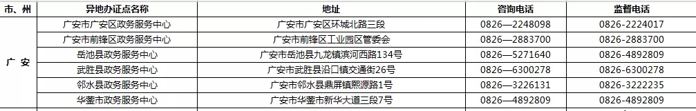 四川省港澳臺居民居住證受理點名稱、地址,咨詢及監督電話: