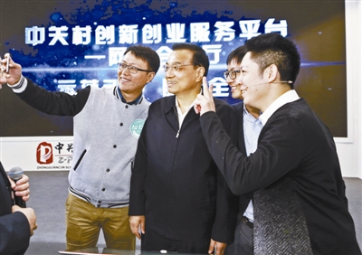 李克強來到中關村活動周啟動儀式主會場,北京、遼寧、上海、安徽、湖北、四川、陜西、深圳等省市和計劃單列市政府主要負責人通過視頻匯報了當地創業創新相關情況。5位創業創新者上臺以點贊手勢推出“雙創”活動周標識。李克強打破既定議程即席講話。總理起身走上講臺說,今天本來沒準備講話,被現場熱烈氛圍感染,上來說幾句為創業創新者“站臺”。他說,當前,我國發展進入新常態,正處在發展方式和新舊動能轉換的關鍵期,要以大眾創業、萬眾創新這一結構性改革激發全社會創造力,打造發展新引擎,今年在世界經濟低迷和金融市場動蕩的情況下,前三季度我國經濟增長6.9%,保持在7%左右,尤其是就業比較充分,其中“雙創”起了重要支撐作用。“雙創”也有力促進結構調整,將推動發展從過度依賴自然資源轉向更多依靠人力資源,促進經濟中高速增長、邁向中高端水平。