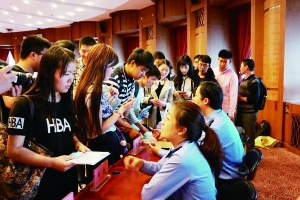 中央財經大學的學生參觀海淀登記注冊大廳。