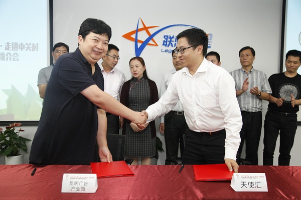 圖為昆明國家廣告產業試點園區管委會與天使匯簽約現場