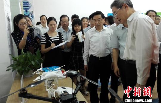 張志軍觀看兩岸青年創(chuàng)業(yè)基地?zé)o人機(jī)。 楊伏山 攝