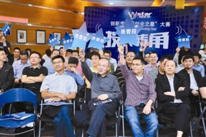 2015創業之星大賽的陪審團皆為投資人,圖為陪審團投資人對項目進行投資邀約。南山區委宣傳部供圖