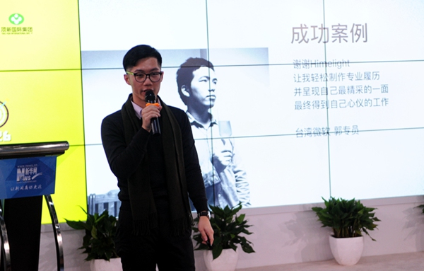“大家好!我是鄭依明,我是90后!今天第一次來(lái)北京,非常興奮!”首期臺(tái)港澳青年創(chuàng)客分享會(huì)上,臺(tái)灣創(chuàng)業(yè)團(tuán)隊(duì)Himelight主創(chuàng)鄭依明用這樣熱情洋溢的開場(chǎng)白,開始了他的分享。他所分享的項(xiàng)目Himelight,正利用專業(yè)簡(jiǎn)歷制作、人際關(guān)系引薦和分享等功能,試圖打造一個(gè)連結(jié)年輕求職者和創(chuàng)業(yè)團(tuán)隊(duì)、企業(yè)主之間的商業(yè)社交平臺(tái)。