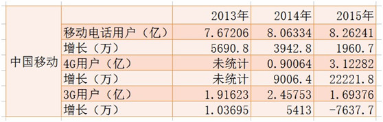 從2008年開始試商用,到2014年的全盛時期,用了長達6年時間,中移動的3G用戶才達到規模頂峰,且只是堪堪接近2.5億。而現在,它只用了2年多時間,4G用戶就已經超過3億大關。其中,僅2015年就超過2.2億!