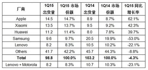 一方面原因來自于智能手機出貨量放緩:根據市場研究機構IDC公布的《全球手機季度跟蹤報告》,2015年全球智能手機出貨量增幅將首次滑落至個位數。今年第一季度,中國智能手機市場出貨量出現了6年以來的首次下滑,第一季度出貨量相比去年同期下降了4.3%。