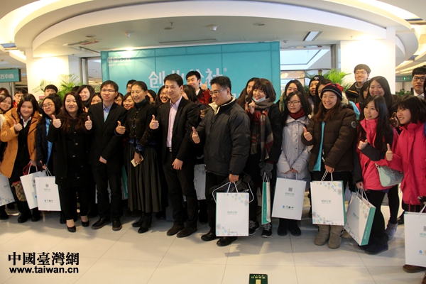 嘉賓領(lǐng)導(dǎo)與到訪的臺灣青年合影留念。(中國臺灣網(wǎng) 陳文韜 攝)
