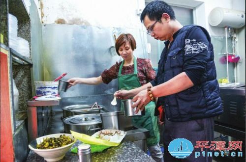 昨天10點30分,記者走進福勝東路一家“臺灣錢記鴨肉面”,這是臺胞錢再旺和妻子林蓮玉開的一家小店,專做臺灣菜。林蓮玉正提著從市場剛剛采購回來的新鮮食材,打算為午餐生意做準備,錢再旺趕緊上前為妻子搭把手。