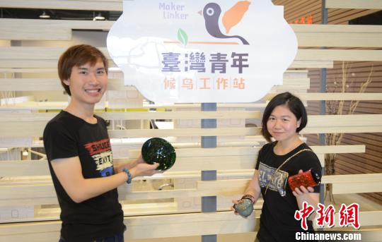 懷揣中華傳統漆藝復興夢想的臺灣青年林芊劭(左)和另一位畢業于臺灣藝術大學的魏君恩(右)成為創業伙伴!∮浾邉⒖筛 攝
