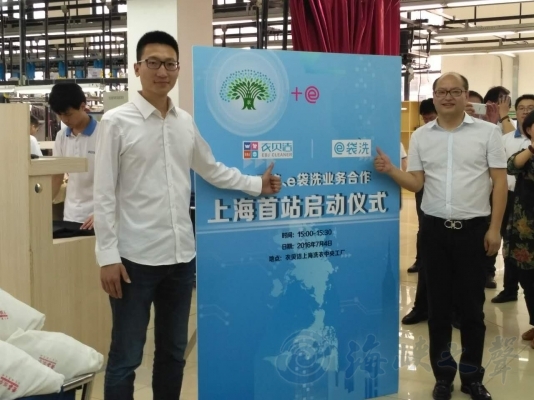 e袋洗CEO陸文勇及衣貝潔總經(jīng)理錢永春在啟動儀式現(xiàn)場