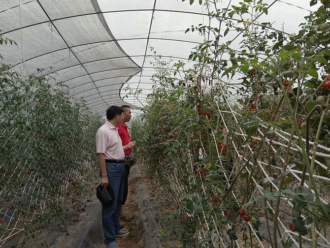 陳福林主任察看臺商吳蒞興小蕃茄試驗地