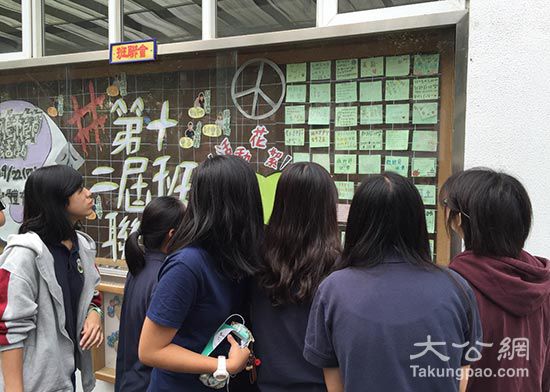 臺灣學生在看櫥窗內(nèi)展示的教師節(jié)祝福語/田雯攝