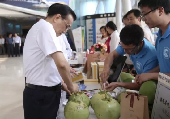 李克強3月22日在三亞市民游客中心考察海南創意旅游紀念品展區時,看到一些包括大學生在內的年輕人正在展示用當地農產品和特色原材料制作的旅游紀念品。總理稱贊他們富有創意,小商品可以打造未來的大希望。他強調,發展新經濟、培育新動能是遵循新發展理念、適應經濟發展新常態的必然選擇,也可以為改造提升傳統動能創造必要和有利條件。