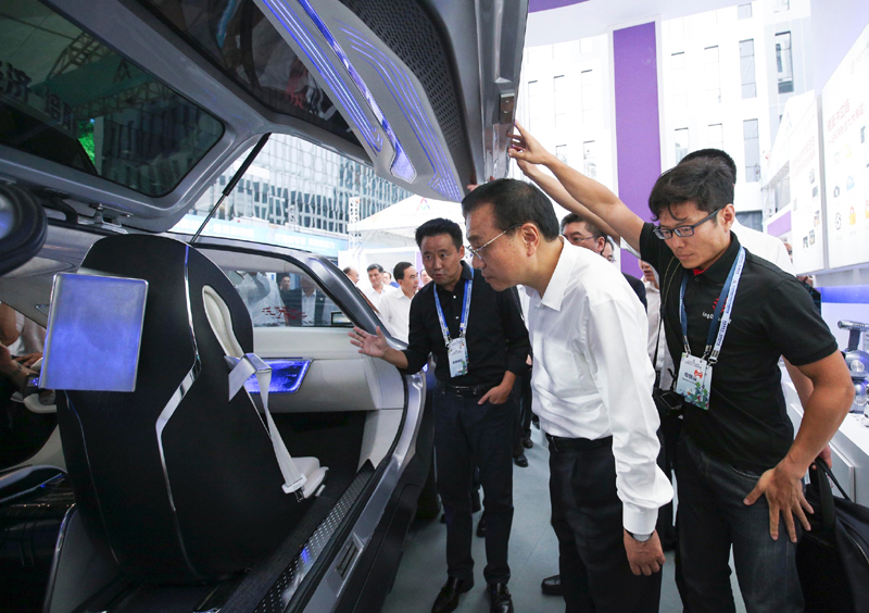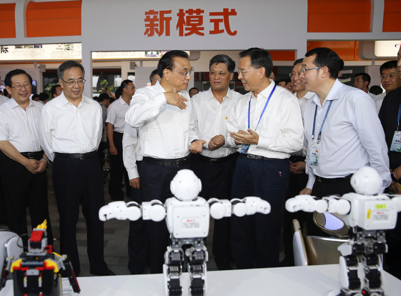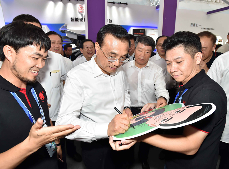 【全國雙創周深圳開展:總理來啦!】李克強12日下午來到深圳灣創業廣場,參觀2016年全國大眾創業萬眾創新活動周相關主題展示。琳瑯滿目的展位展品五花八門,創意十足。展臺負責人爭相向總理介紹他們最新的創業創新成果?偫碇辽僭20多個展臺駐足停留。