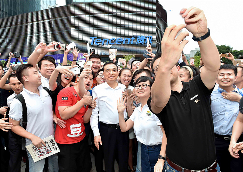 【李克強與創業者拍全景照片】12日下午全國雙創周深圳主會場上,年輕創業者簇擁著總理求合影!拔覀兪亲鋈跋鄼C的,您和我們全體創業者拍張全景照片吧!”李克強欣然答應。他說,眾多創業者聚集起來,顯示出我們國家民族創造的智慧和力量。創意無極限,創業無止境。希望你們把創意腳踏實地變為現實。