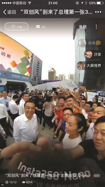 “我們是做全景相機(jī)的,您和我們?nèi)w創(chuàng)業(yè)者拍張全景照片吧!”和一群年輕的創(chuàng)業(yè)者們一起簇?fù)碇偫恚惤饒驘崆榈叵蚩偫斫榻B自己公司的產(chǎn)品,并求合影。總理欣然答應(yīng)他的請求。于是就有了這張上千人點(diǎn)贊的全景照片。
