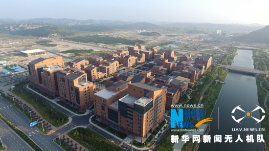 平潭綜合實驗區臺創園側后方全景圖,外圍綠水流過。 肖和勇攝