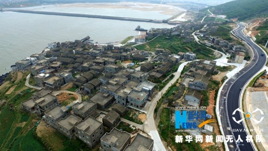 石頭古厝群沿海岸分布,新修建的環島路從山邊穿過。 肖和勇攝