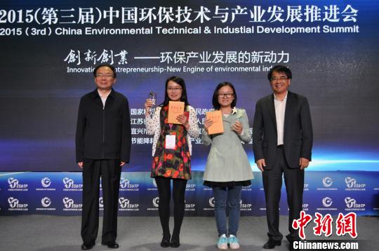 中新網南京10月29日電(記者 洪曉紅 孫權)經過北京、南京兩站師徒選拔賽的激烈競爭,2015黑馬大賽環保創新創業大賽總決賽最終在“中國環保之鄉”宜興落幕,浙江維樸環境科技有限公司和HI-SOT梯度復合臭氧催化氧化技術團隊分別摘得企業、團隊組的桂冠。29日,在宜興舉行的2015中國環保技術與產業發展推進會上,科技部副部長張來武與無錫市委書記李小敏一同為大賽一等獎獲得者頒獎。
