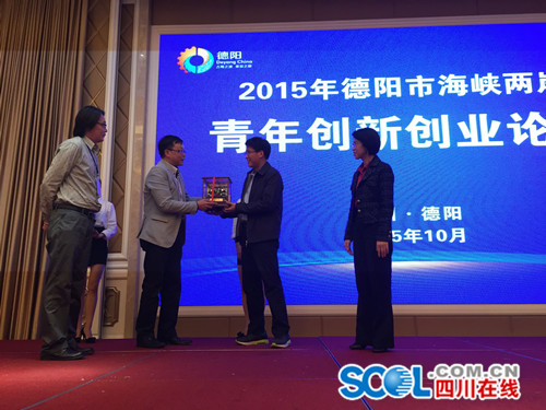 創(chuàng)新創(chuàng)業(yè)論壇上,成都市臺協(xié)、德陽市臺協(xié)、共青團(tuán)德陽市委、德陽市臺辦還簽訂了《共同推進(jìn)德陽市海峽兩岸青年創(chuàng)業(yè)園建設(shè)的合作協(xié)議》。隨后,共青團(tuán)德陽市委李棟代表德陽團(tuán)市委、德陽市政府臺辦、德陽市臺協(xié)與成都市臺灣同胞投資企業(yè)協(xié)會常務(wù)副會長、青委會主委張榮華互贈紀(jì)念品。