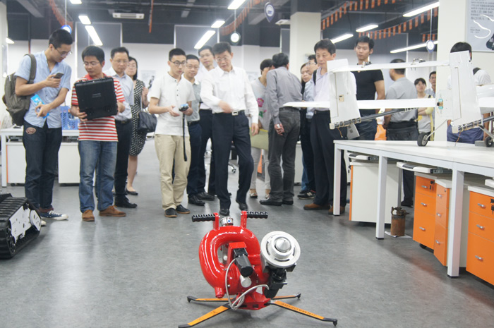 在聽取孵化基地及海滄區(qū)眾創(chuàng)空間發(fā)展情況等介紹后,黃文濤局長一行還與創(chuàng)業(yè)團(tuán)隊(duì)交流,觀看機(jī)器人演示。比如會(huì)泡咖啡的機(jī)器人、便攜式無人機(jī)、消防機(jī)器人等。其中,由唐峰科技研發(fā)的消防機(jī)器人是首次在孵化基地亮相。消防第一次亮相就獲得了大家的稱贊。