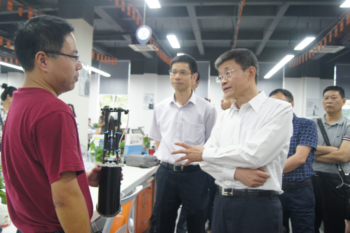 5月10日下午,國臺(tái)辦交流局黃文濤局長一行,來到一品創(chuàng)客 海峽兩岸無人機(jī)暨智能機(jī)器人孵化基地參觀調(diào)研。黃文濤局長一行聽取了孵化基地運(yùn)營情況介紹,并與唐峰科技、九洲眼航空、控智機(jī)器人等創(chuàng)業(yè)團(tuán)隊(duì)互動(dòng)交流。