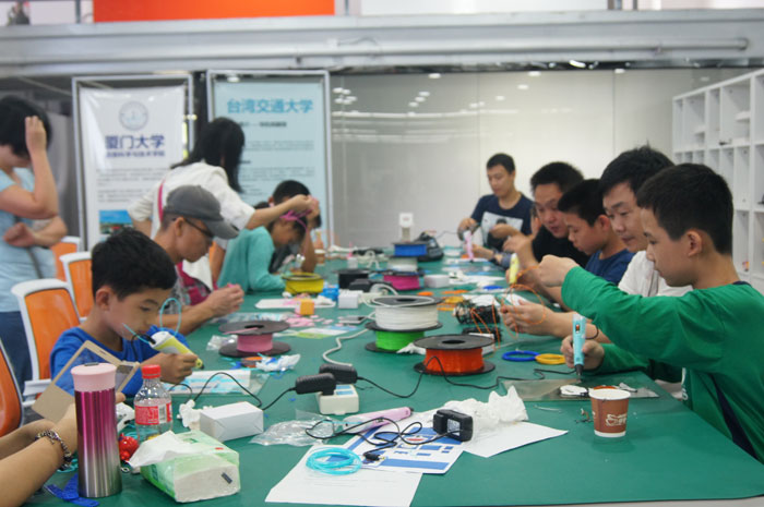 海峽兩岸無人機暨智能機器人孵化基地攜手智凡三維團隊,舉辦3D打印親子體驗活動,帶來了最潮的3D打印筆。3D打印筆基于3D打印原理,擠出熱融的塑料,然后在空氣中迅速冷卻,最后固化成穩定的狀態。活動現場,小朋友們利用這支神筆,做了一回“神筆馬良”,把創意馬上成型,共同創作3D立體畫。