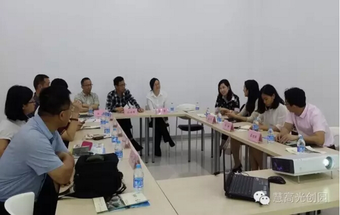 參觀完畢,雙方開(kāi)展了交流座談會(huì),慧高·光創(chuàng)園行政總監(jiān)潘蘭英女士為參訪團(tuán)做園區(qū)介紹和工作匯報(bào),然后雙方圍繞園區(qū)經(jīng)營(yíng)模式、臺(tái)青創(chuàng)業(yè)情況、政府如何扶持園區(qū)發(fā)展、政府政策如何對(duì)接企業(yè)等進(jìn)行深入交流。