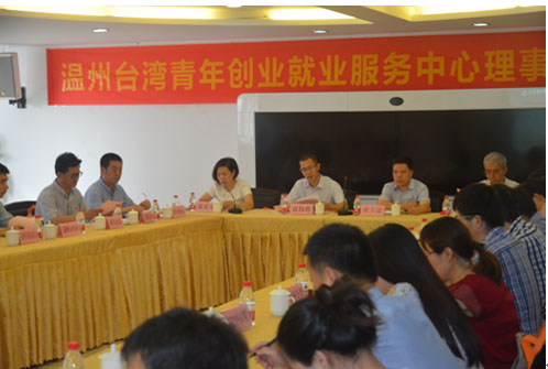 6月29日上午,溫州臺灣青年創業就業服務中心理事會召開第二次會議,在溫理事單位、特邀單位和合作園區代表參加會議,溫州市副市長苗偉倫、市政府副秘書長虞立清、浙江工貿職業技術學院院長賀星岳等領導出席會議。會議由市臺辦主任蘇愛萍主持。