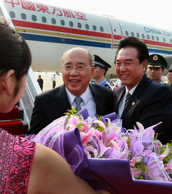 At the invitation of Hu Jintao, general secretary of the Communist Party of China (CPC) Central Committee, Wu kicked off his visit a week after Ma Ying-jeou of the KMT took office as leader of the island.