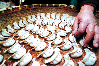Dumpling is a kind of traditional food that people eat when it is in spring festival. Chinese people call it ^Jiao-zi ̄. They often make it in Even of the Chinese New Year. It is very delicious.