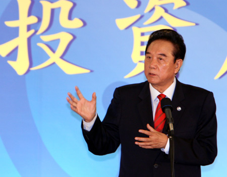 Chen Yunlin, president of the Chinese mainland's Association for Relations Across the Taiwan Straits (ARATS), speaks on a symposium on the investment of Chinese mainland to Taiwan, in Taichung of southeast China's Taiwan, Dec. 23, 2009. (Xinhua/Yuan Man)