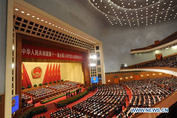 The Fourth Session of the 11th National People's Congress holds its closing meeting at the Great Hall of the People in Beijing, China, March 14, 2011. (Xinhua/Xie Huanchi)