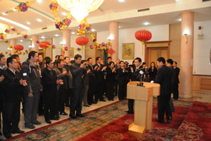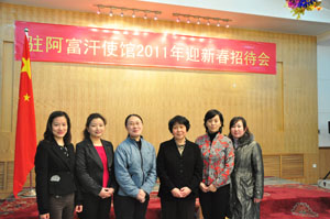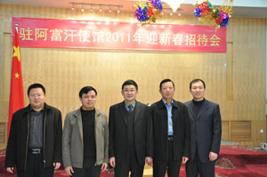 2011年1月21日晚,中國駐阿富汗使館內張燈結彩、歡樂喜慶。駐阿富汗大使鄭清典為全體在阿華人華僑和中資機構代表舉辦盛大的2011年春節招待會。中冶江銅、中鐵十四局、中興通訊、華為技術等中資機構代表、新華社、中央電視臺記者、旅阿華人華僑及使館全體人員歡聚一堂,喜迎農歷兔年新春。