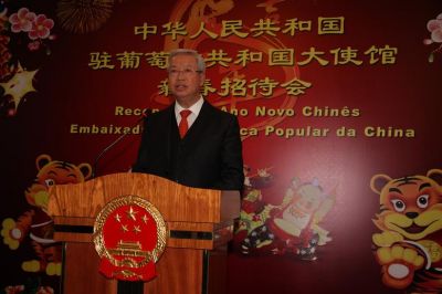 高大使發表新春致辭。他首先向廣大旅葡僑胞和葡萄牙友人拜早年,祝大家虎年吉祥,萬事如意。高大使表示,2009年是不平凡的一年,新中國迎來建國60周年華誕。偉大祖國的發展進步令海內外炎黃子孫感到無比自豪。中國政府從容應對國際金融危機的沖擊,帶領全國人民勵精圖治,開拓進取,實現國民經濟總體回升向好,國內生產總值增長8.7%,中國成為拉動世界經濟復蘇的重要引擎。高大使積極評價中葡關系取得的新進展,表示中葡雙方將以2009年共同慶祝建交30周年為契機,不斷增強政治互信,加強務實合作,以造福于兩國人民。