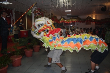 當晚活動現場,鞭炮齊嗚,鑼鼓聲聲,醒獅獻舞,到處洋溢著濃濃的年味。與會華僑華人相互祝愿,同敘友誼,喜迎佳節。