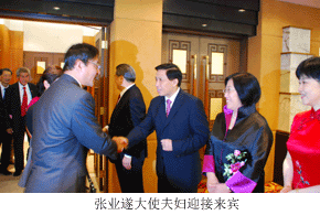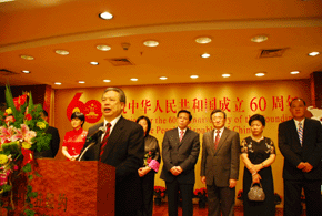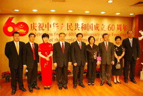 2009年9月15日晚,中國常駐聯(lián)合國代表團和駐紐約總領館舉行隆重招待會,熱烈慶祝中華人民共和國60周年華誕。中國常駐聯(lián)合國代表張業(yè)遂大使夫婦、駐紐約總領事彭克玉大使夫婦、常駐聯(lián)合國代表團劉振民大使夫婦及美東地區(qū)八百余名僑學界代表出席招待會。