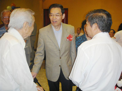 老僑胞們暢所欲言,緊拉著李長華大使和夫人金美鳳的手,心情無比激動,感謝大使和夫人為他們送來了溫暖,都稱贊李大使和夫人是體貼他們的貼心人,保持了聯(lián)系僑胞、關(guān)心僑胞的好作風(fēng)。