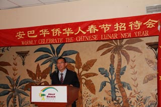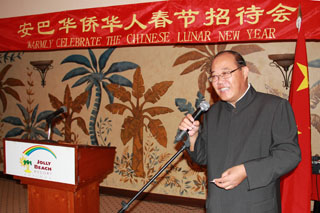 2011年1月30日,駐安提瓜和巴布達大使劉漢明和夫人焦芳在喬利海灘酒店舉行2011年春節華人華僑招待會。當地華人華僑、中資機構代表、使館全體成員200余人出席。