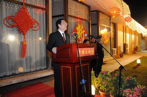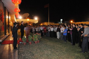 2010年2月4日晚,中國駐蘇丹大使館張燈結(jié)彩、燈火斑斕,李成文大使在此隆重舉行在蘇華人華僑新春招待會。我在蘇中資機(jī)構(gòu)、維和部隊和警察、援蘇醫(yī)療隊、華人華僑及留學(xué)生代表等共計400余人應(yīng)邀出席。