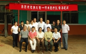 醫療隊長向孫大使(右一)介紹工作 孫大使(前排左三)與醫療隊員合影