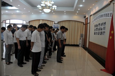 當地時間上午10點,使館臨時代辦付吉軍帶領使館全體館員和家屬以及駐坦首席軍事專家辦公室人員集體默哀,深切哀悼舟曲遇難同胞。