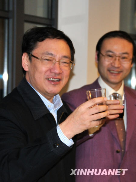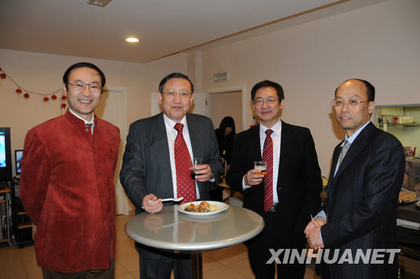 歐洲總分社大年二十九舉辦新年招待會,中國駐比利時王國使館張援遠大使(左二)出席,歐洲總分社劉江社長(左三),姜巖副社長(左一) 新華網發