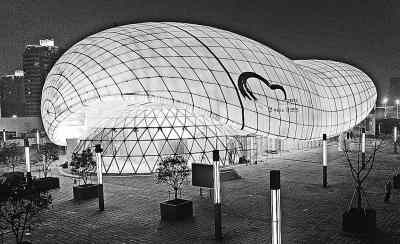 3月31日,上海浦西世博園區中國航空館點亮景觀燈。當日,上海世博園區流光溢彩,以絢麗的姿態迎接世博會開幕倒計時30天的到來。新華社發