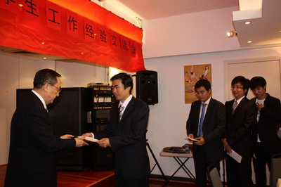 總領館教育組白剛參贊銜領事接受學生捐款
