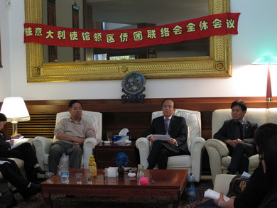2010年5月13日,中國駐意大利大使丁偉在官邸召開羅馬領區僑團聯絡會全體會議。陳國友參贊、唐友京參贊、領事部全體人員,使館領區23個主要僑團的聯絡員或代表,中文學校及華文媒體代表近40人出席。與會人員圍繞旅意僑胞生存、融入、發展的現狀、子女教育及遇到的困難,對使館領事工作的意見、建議,中國文化年等議題展開了熱烈的討論。