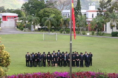 駐毛使館為災害遇難同胞降半旗