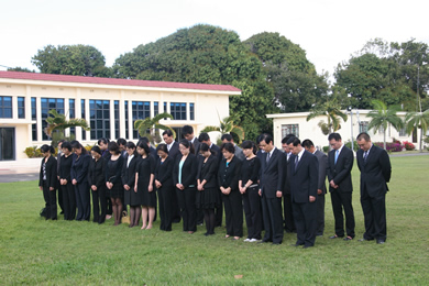 館員為災害遇難同胞默哀
