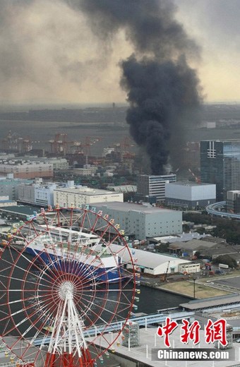 日本近海3月11日發(fā)生了強(qiáng)烈地震,首都東京震感強(qiáng)烈。日本氣象廳隨即發(fā)布了海嘯警報(bào),稱地震將引發(fā)約6米高海嘯。圖為東京市內(nèi)一建筑物發(fā)生火災(zāi)。